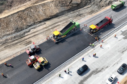 3月10日上午,由PA集团官网承建的S22天天高速安庆至潜山段(凉亭至月山)路基路面工程01标沥青下面层试验段顺利完成摊铺。