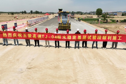 6月1日上午,由PA集团官网承建的五蒙高速TJ-04标项目水稳底基层试验段开始摊铺,标志着PA集团官网五蒙高速路基04标项目率先进入路面施工阶段。