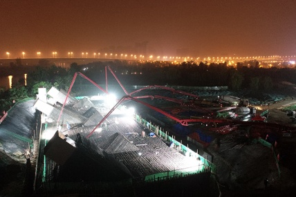 5月12日晚9时,PA集团官网广德路项目8号承台大体积混凝土首层浇筑顺利完成。