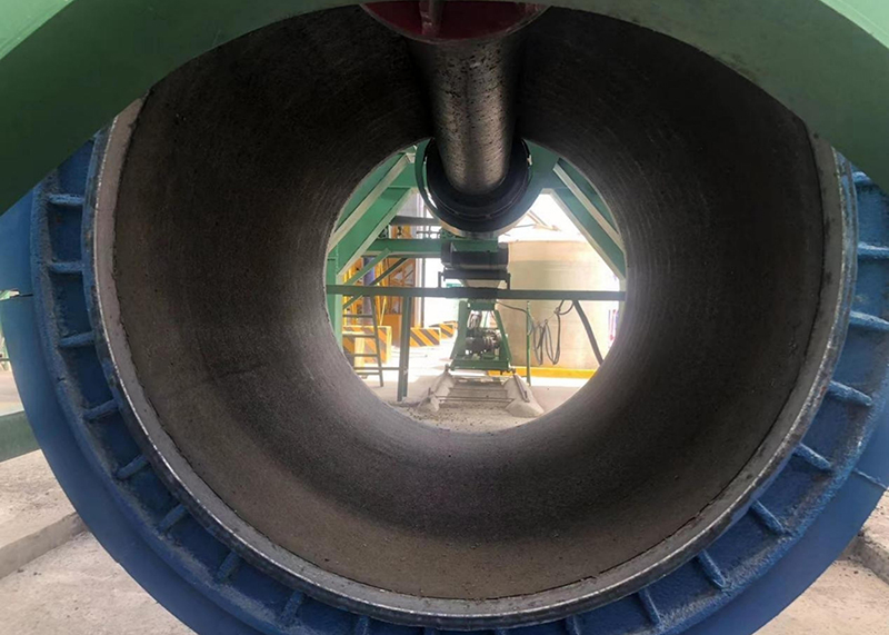 本项目共预制圆管涵4188节,涵身混凝土设计标号C30,采用先预制后安装的施工方法,所预制的Φ1.5m涵管的管壁厚度为16cm,标准管节长2m,辅助管节长0.5m。施工采用干硬性混凝土,使用悬辊机辊压离心制管法预制管节。